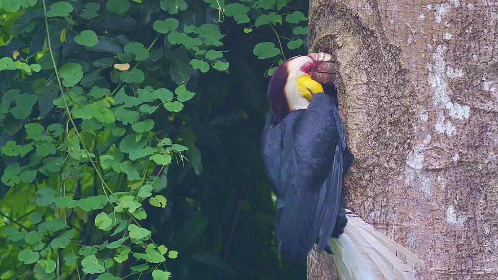 近日,在有“中国犀鸟谷”之称的云南铜壁关省级自然保护区洪崩河片区,记者记录到国家一级保护野生动物花冠皱盔犀鸟母子先后出巢的珍贵影像。