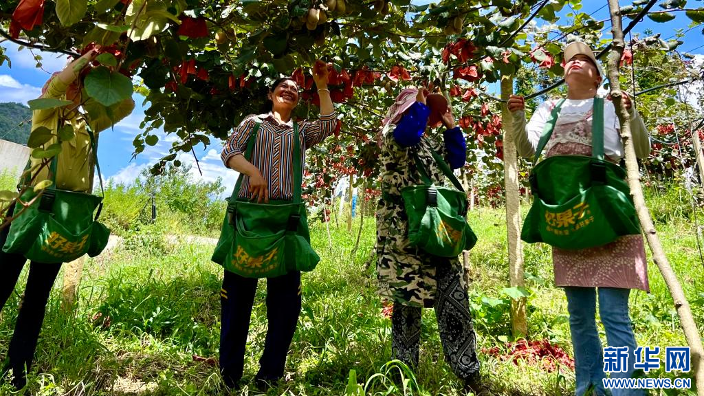 眼下正是猕猴桃成熟上市的季节,西畴县三光片区猕猴桃基地迎来了采收期,小小猕猴桃如今结成了乡村振兴的“致富果”,富了果农,兴了产业。记者了解到,得益于沪滇协作项目的有效扶持,当地不断夯实基础设施建设,通过建设高效节水喷灌系统,有效解决猕猴桃冬春季节干旱缺水问题。去年猕猴桃基地采收猕猴桃800多吨,创造产值约1000余万元。穿梭在猕猴桃果林里,藤架上挂满了饱满多汁的猕猴桃,香味沁人心田。工人们在猕猴桃果林里正忙着采摘,尽享丰收的喜悦。