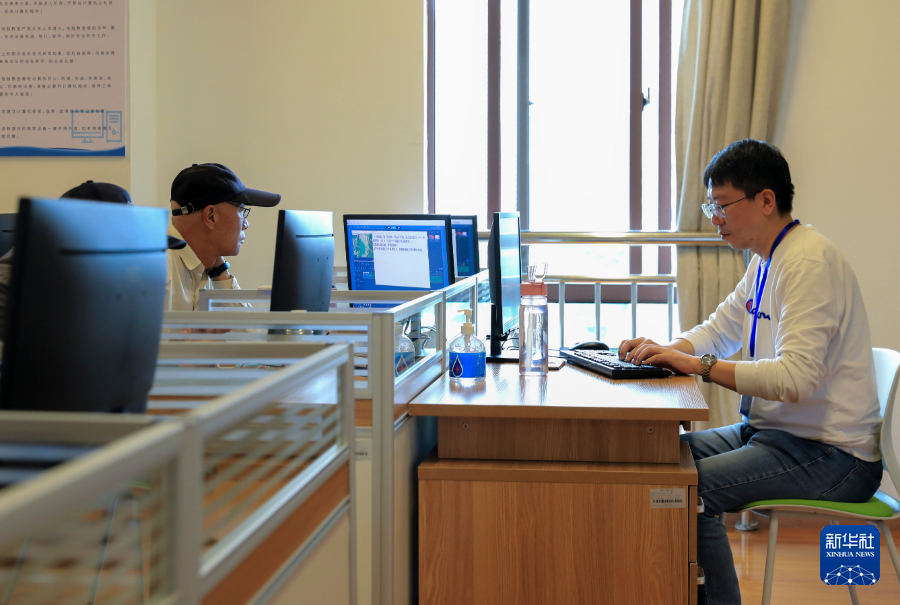 在云南老年大学的图片视频处理课上,老师(右)在授课(9月7日摄)。新华社记者 张旻曦 摄
