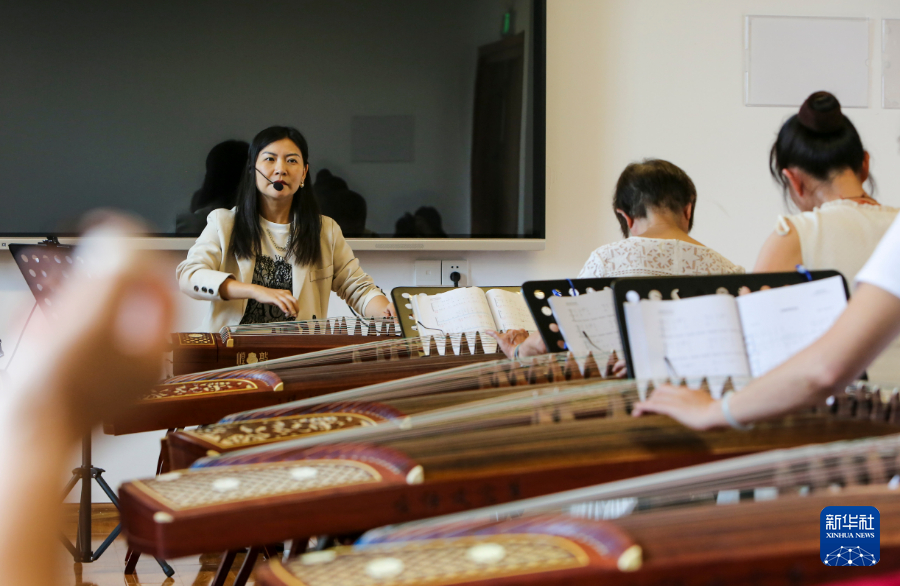 在云南老年大学的古筝课上,老师在带领学生一起弹奏(9月7日摄)。新华社记者 崔文 摄