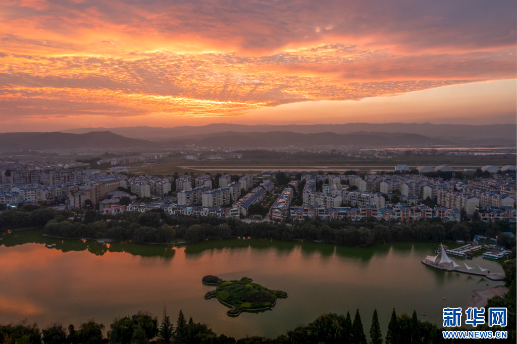 近日,云南省曲靖市上空出现火烧云美景,瑰丽多彩的朝霞倒映湖中,仿佛油画一般,整个湖面染成一片金黄,美得令人惊艳!