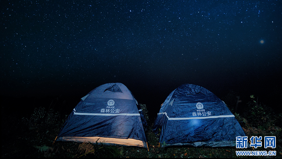 民警搭帐篷执勤(摄于9月28日)。新华网发(楚雄州公安局供图)
