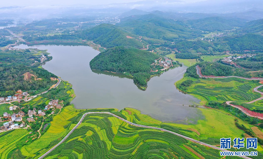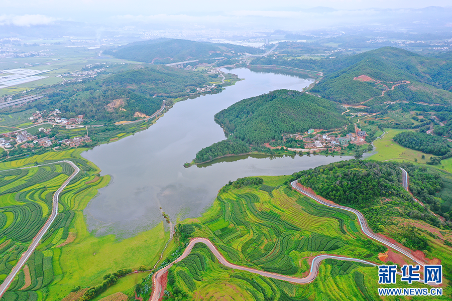 近日,在云南省楚雄彝族自治州牟定县,摄影爱好者用航拍记录庆丰湖,青山环绕、湖光潋滟、风光旖旎……近年来,牟定县坚持生态优先,绿色发展理念,持续打造水清岸绿景美的良好生态环境。(聂铭 刘宏)