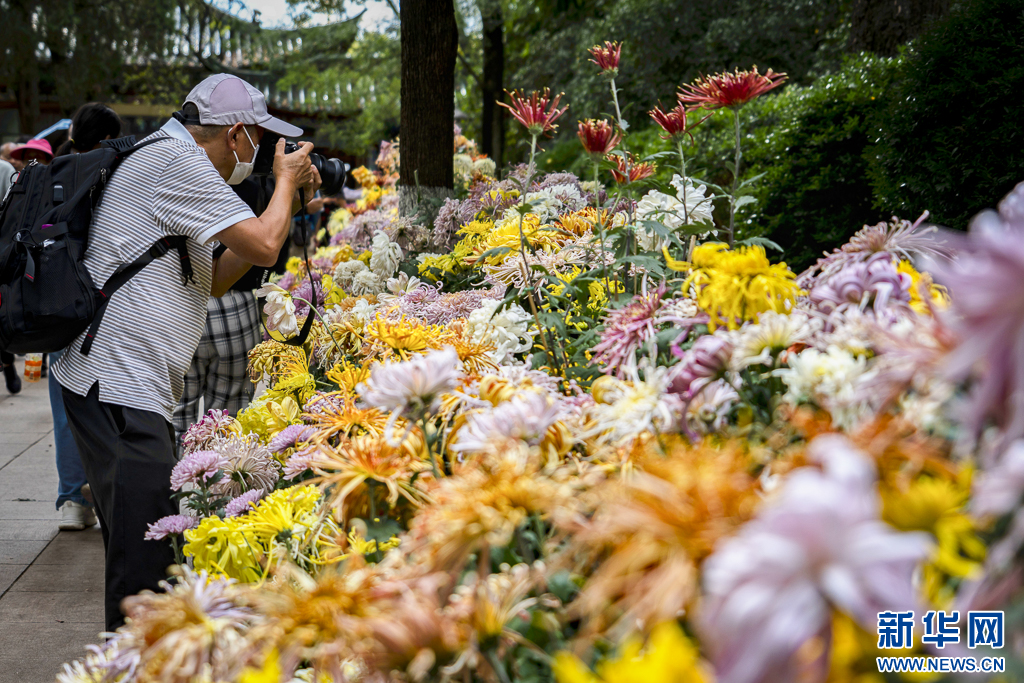 各色菊花竞相绽放(10月2日)。新华网发(郑益 摄)