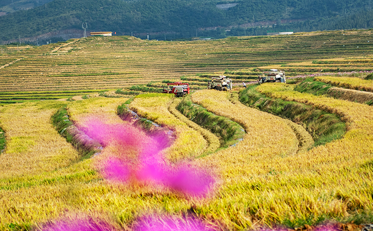 秋天是丰收的季节,也是金色的季节。近日,云南省曲靖市马龙区张安屯街道办事处,随着水稻的成熟,放眼望去,金色的稻浪,在阳光的照射下,光彩夺目。