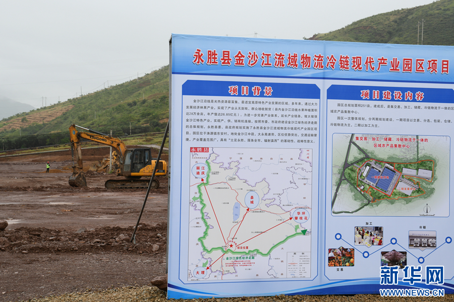 今年6月,永胜县金沙江流域物流冷链现代产业园区举行开工仪式。目前,该项目已完成整个园区地界勘测、土地征收、三通一平和施工临时设施建设等工作,现正在进行大面积挖方、回填等施工作业。