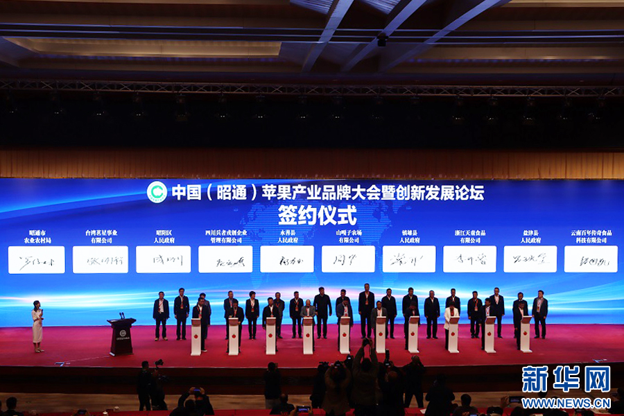 当天,昭通市人民政府与中国苹果产业协会签订了合作框架协议,共签约项目11个,总签约金额34.53亿元。签约项目主要涉及果胶生产建设、“盒马村”建设、肉牛生产集群发展、冷水鱼生态养殖、生态竹笋及食品加工等。
