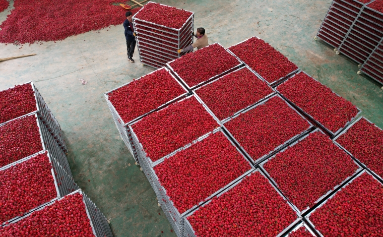 云南曲靖:辣椒丰收烘烤忙 火红产业助增收