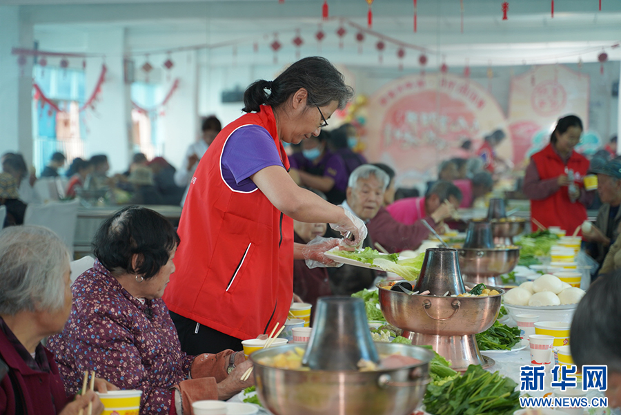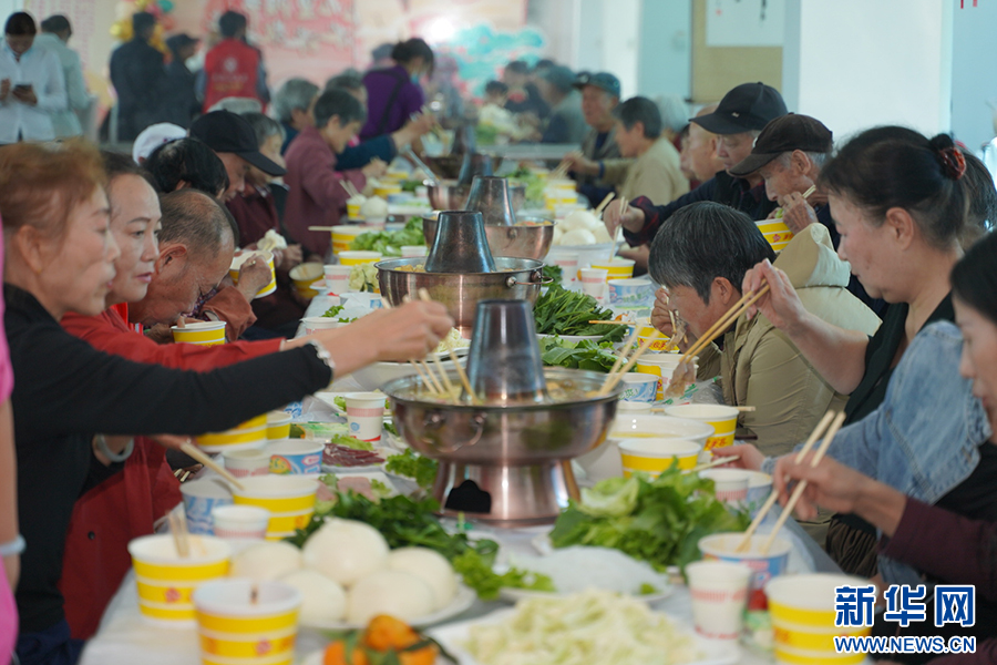 为老年人们准备丰盛的“长街宴”(10月23日摄)。新华网发(东华街道席子营社区供图)