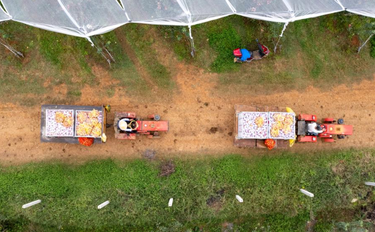 11月3日在昭通市昭阳区拍摄的中新慧农供应链小肉串中央工厂(无人机照片)。新华社记者 陈欣波 摄