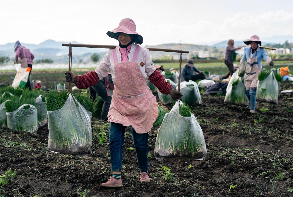 11月3日,工作人员在昭通市昭阳区中新慧农供应链小肉串中央工厂搬运小肉串。新华社记者 陈欣波 摄
