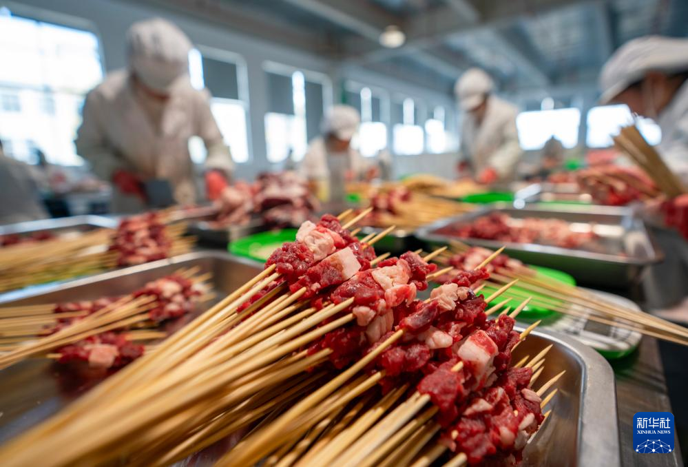 11月3日在昭通市昭阳区中新慧农供应链小肉串中央工厂拍摄的小肉串。新华社记者 陈欣波 摄