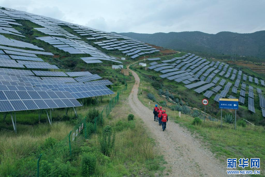 供电人员在大理弥渡华润新能源光伏发电站开展光伏设备检查工作(资料照片)。(沙子键 摄)
