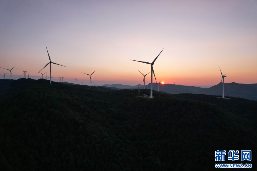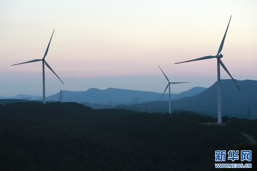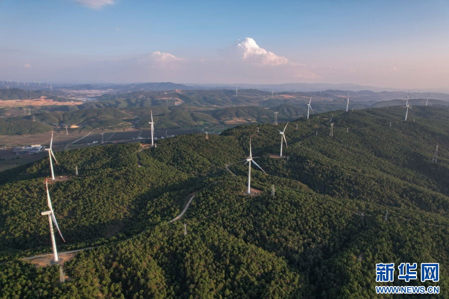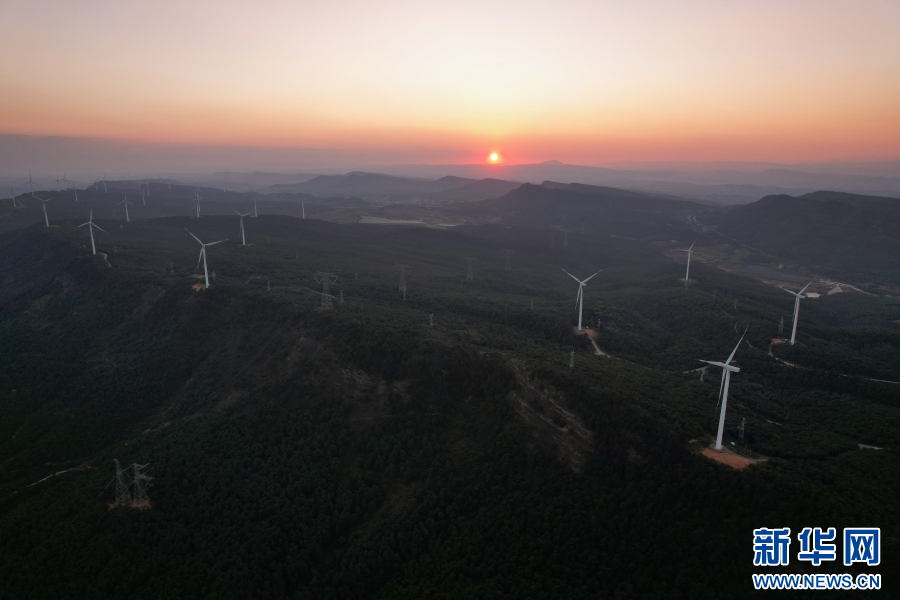 近日,位于云南省曲靖市马龙区诸葛南山的风力发电场,旋转的风车与起伏的山峦、蓝天白云、落日霞光构成了一幅美丽画卷。近年来,曲靖市大力发展清洁能源,风力发电和光伏发电装机总量逐年增加,为实现经济社会高质量发展增添动能。