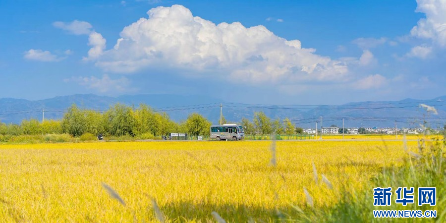 深秋,云南省大理白族自治州的稻田迎来丰收,田野染金、洱海碧波、苍山点翠相映成趣,一幅色彩明丽、如诗如画的秋日画卷在苍洱大地展开。(完)(大理市融媒体中心 赵正银 韩玉婷)