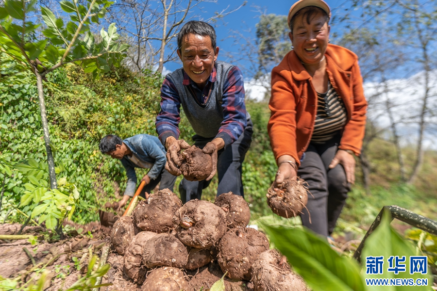近日,云南省大理白族自治州洱源县西山乡胜利村,农户们刚采收完今年的核桃,又迎来了魔芋的收获季,林上林下,一地双收。