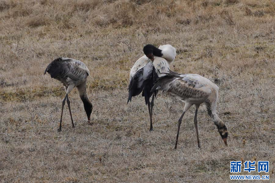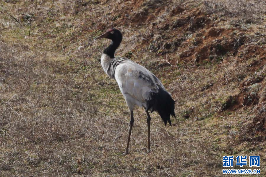 飞抵云南寻甸黑颈鹤省级自然保护区越冬的黑颈鹤(11月7日摄)。新华网发(云南寻甸黑颈鹤省级自然保护区管护局 供图)
