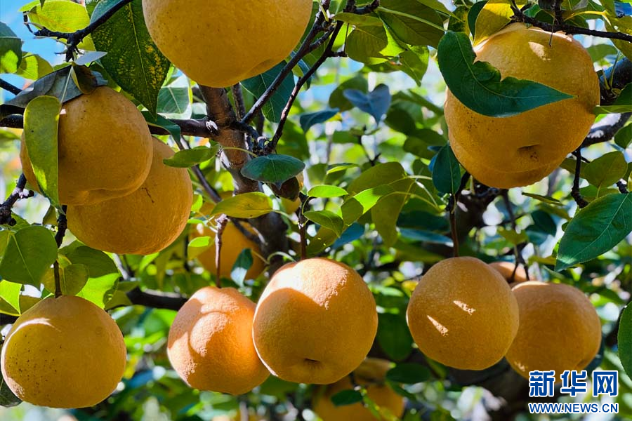 硕大的木梨挂满枝头(11月9日摄)。新华网发(永胜县融媒体中心供图)