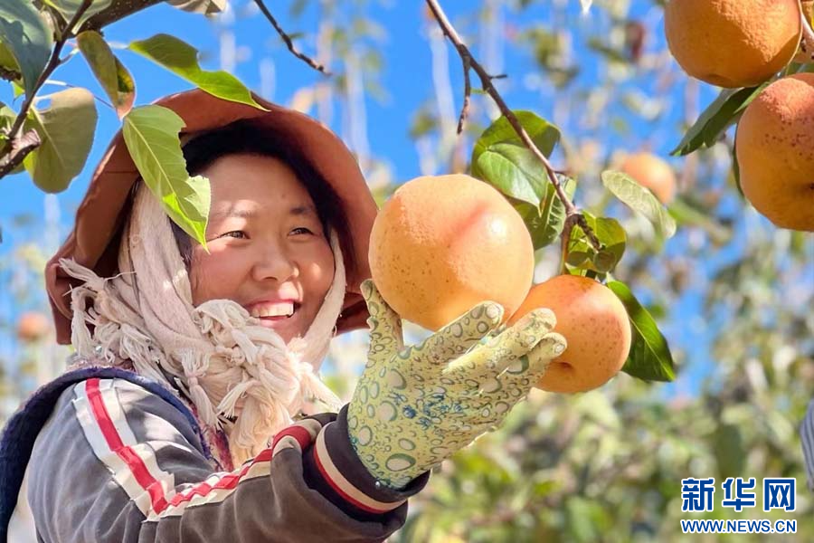 果农采摘木梨(11月9日摄)。新华网发(永胜县融媒体中心供图)