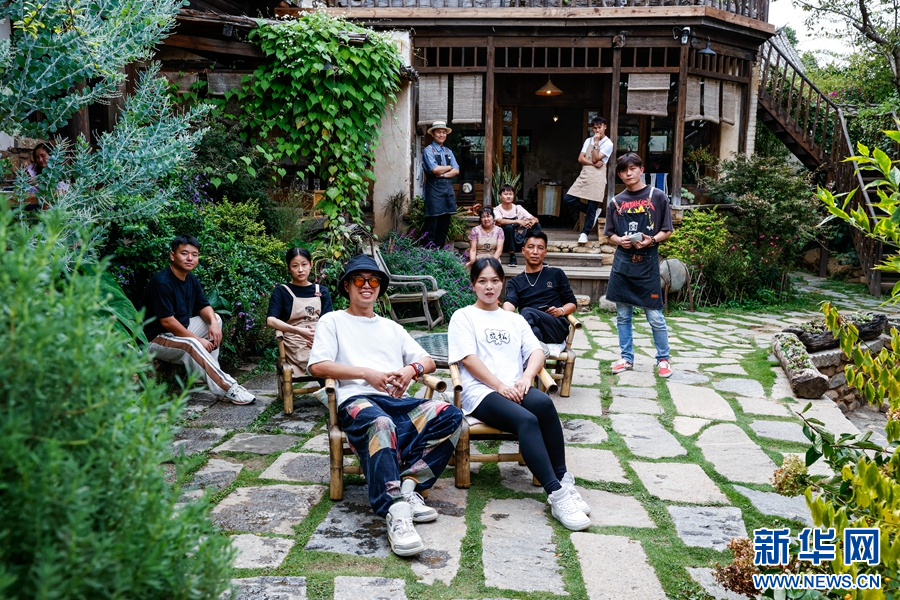 电视剧拍摄完成后,有风小院原样保留了下来,图为店员们在小院中留影(摄于9月19日)。新华网 赵普凡 摄