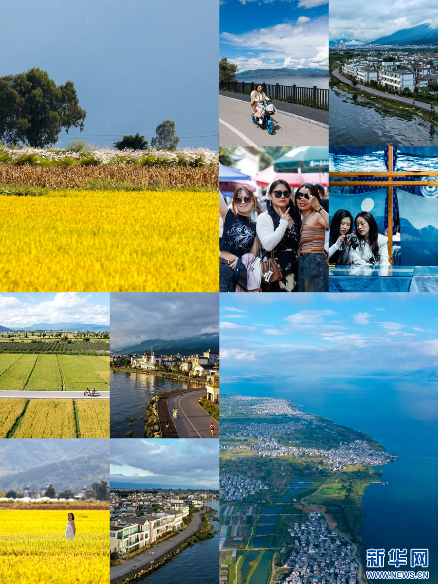 拼版图片:大理各旅游景点,“追风”而来的游客们。新华网 赵普凡 摄
