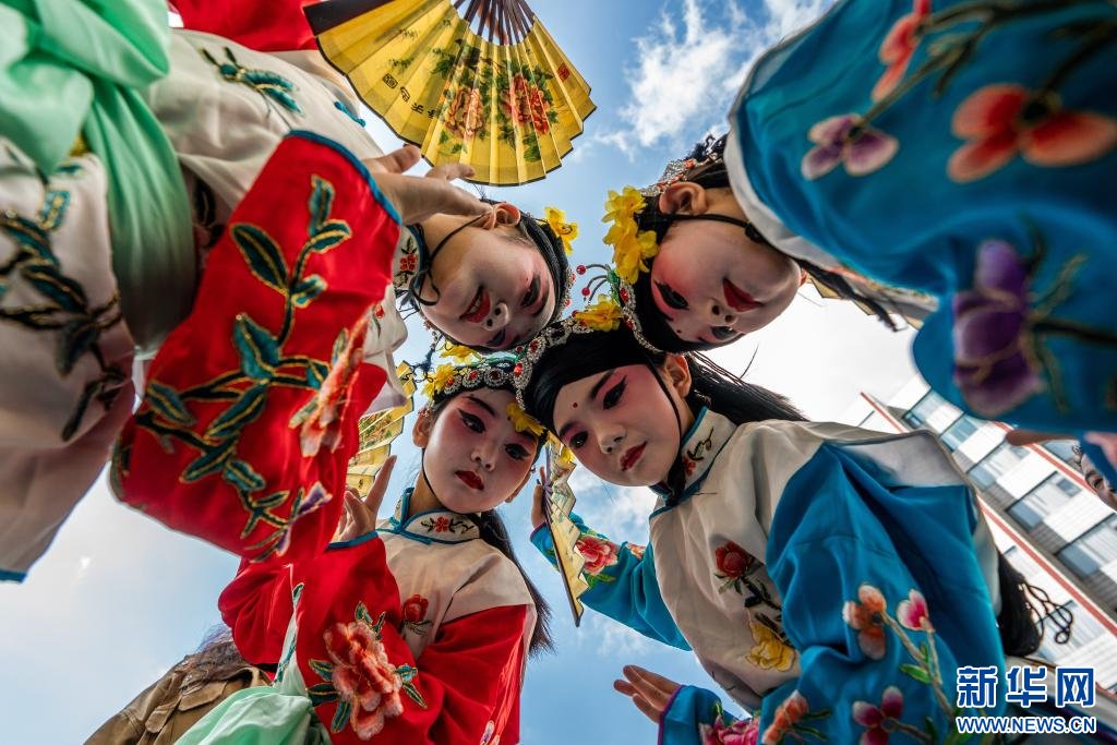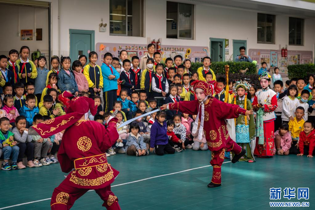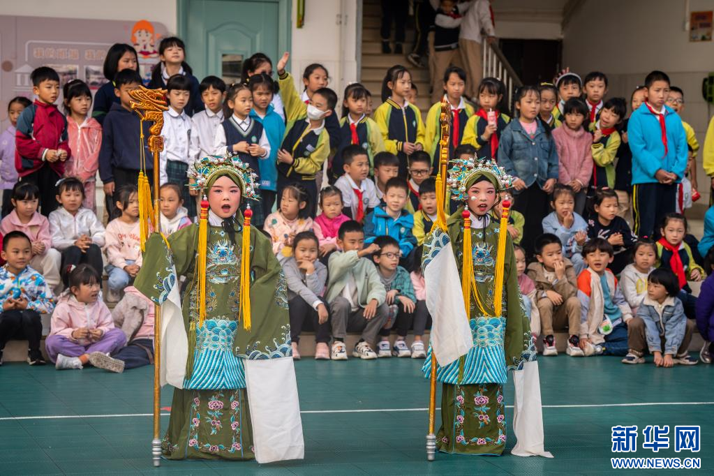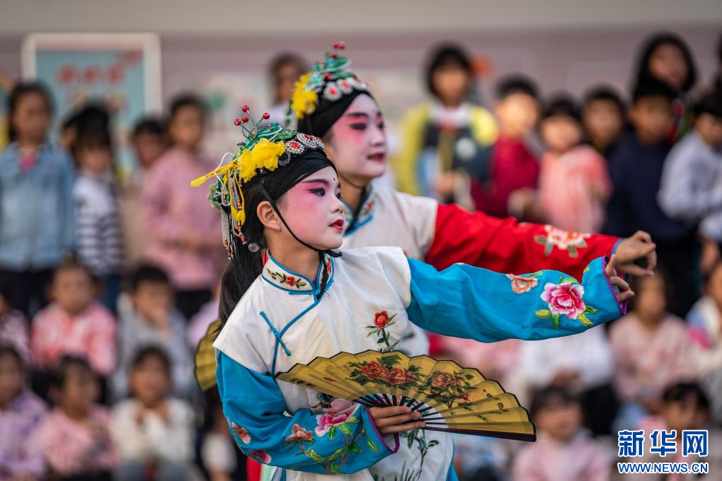 在云南省昆明市五华区文林小学,少儿滇剧传习班的小演员在表演节目。