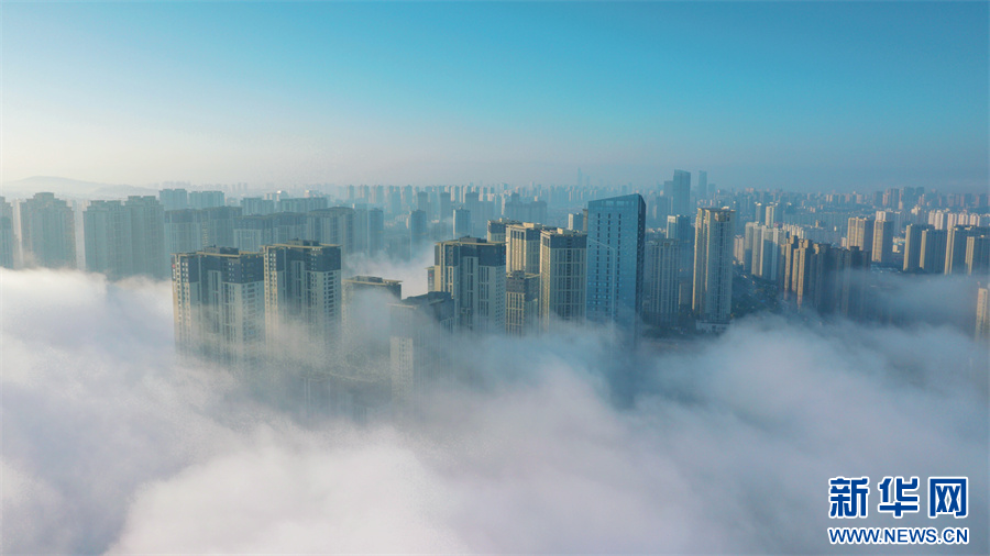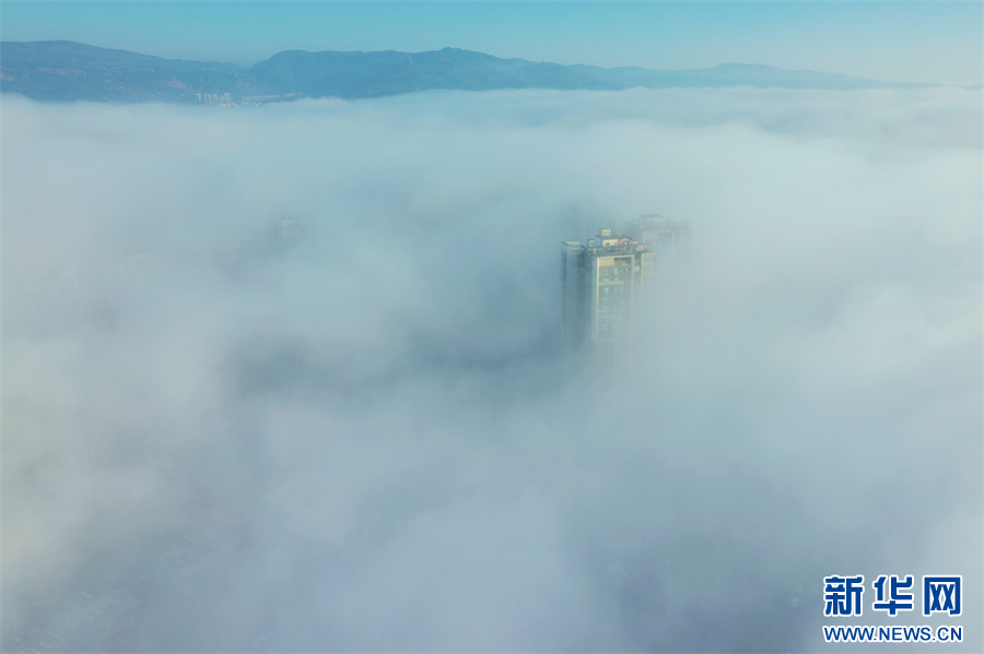 云雾与城市勾勒出一幅奇幻的冬日美景(11月20日摄)。新华网发(杨景浩 摄)
