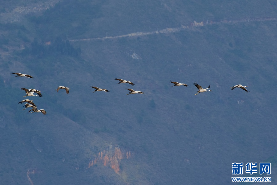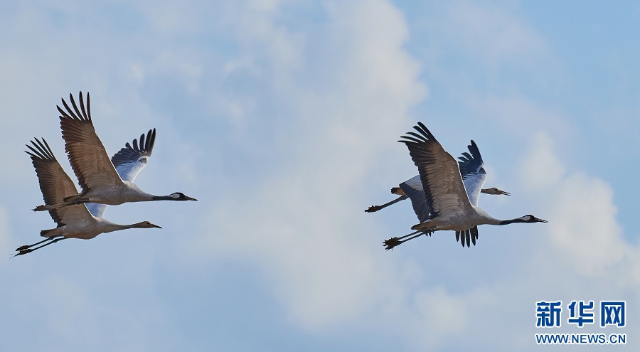 飞翔的灰鹤(11月15日摄)。新华网发(郭康 摄)
