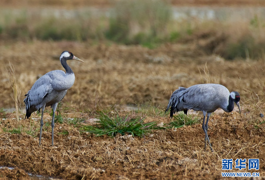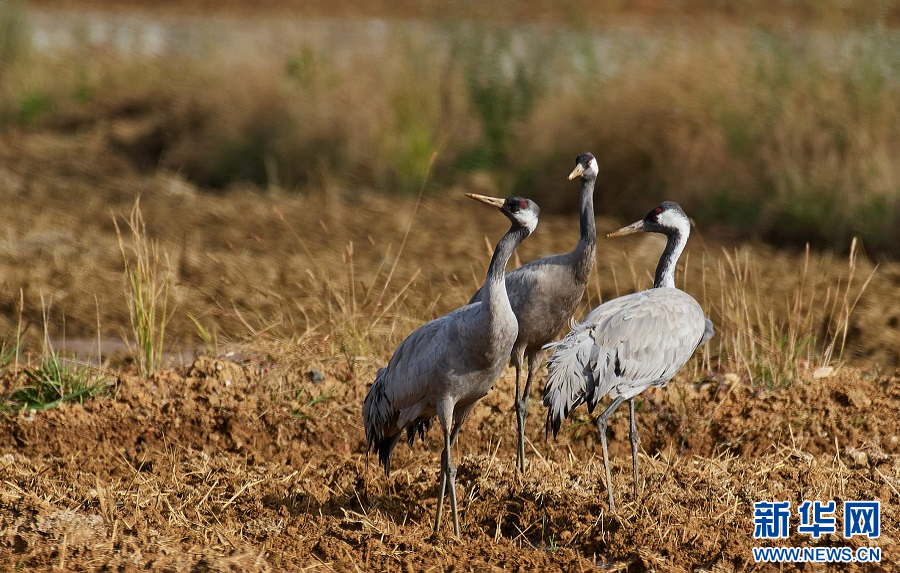 在田野里的灰鹤(11月15日摄)。新华网发(郭康 摄)
