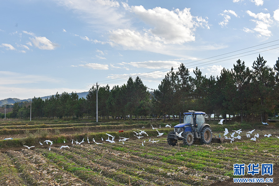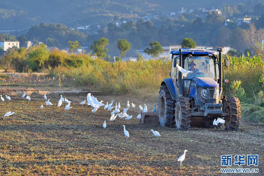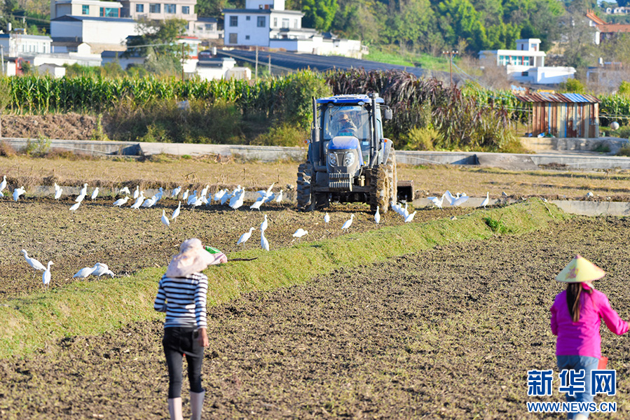 入冬以来,云南省保山市昌宁县全面进入冬季作物播种季。田间地头,农民正忙着耕田、播种,成群的白鹭在田间飞舞、觅食。人鹭和谐同忙碌,勾勒出一幅冬日农忙的乡村美景。