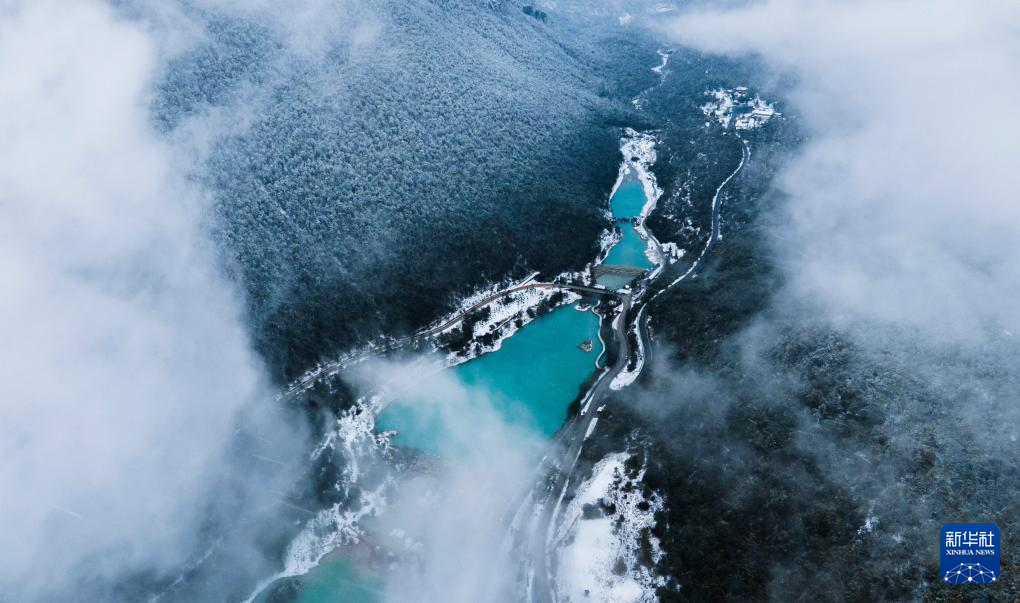 冬日的蓝月谷云雾弥漫,白雪点缀,别样美丽。