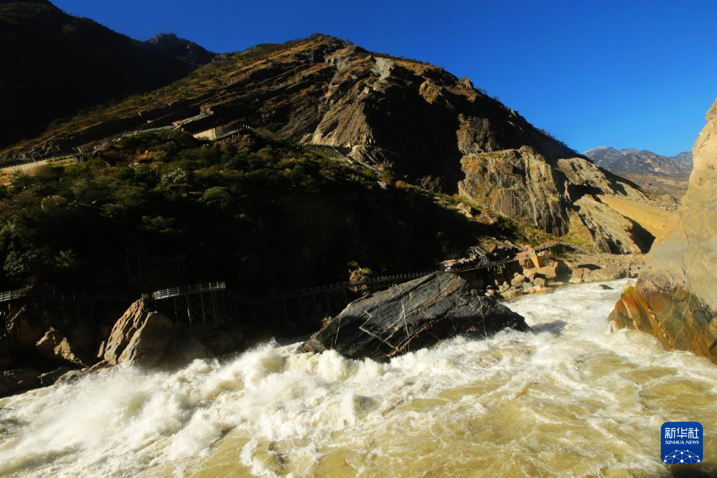 11月26日,列车驶过虎跳峡金沙江铁路大桥。