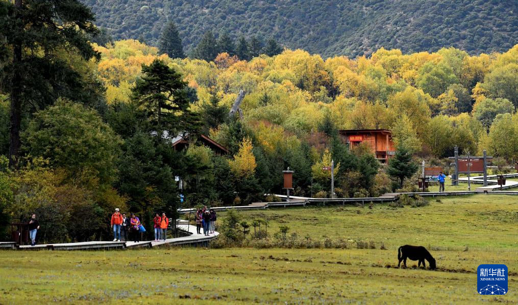 游人在云南迪庆州普达措景区里游览。新华社记者 蔺以光 摄