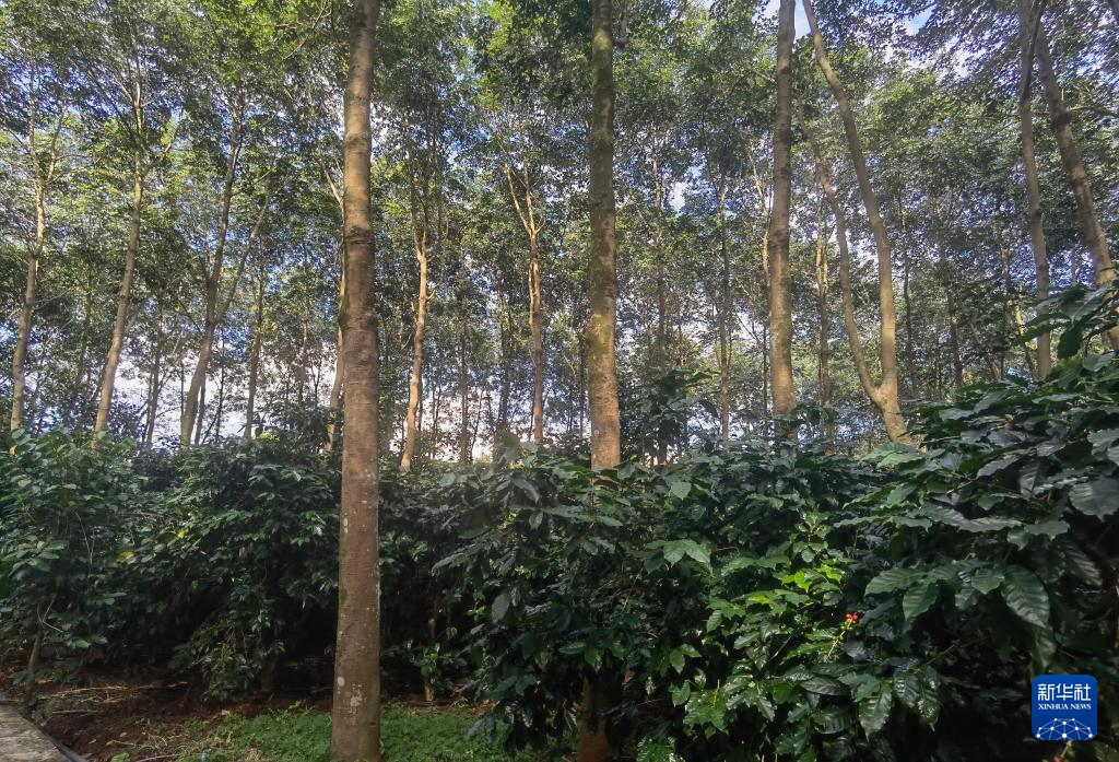 云南省德宏热带农业科学研究所“国家热带植物种质资源库咖啡分库”内,橡胶树与咖啡树间作种植。新华社记者黄韬铭 摄