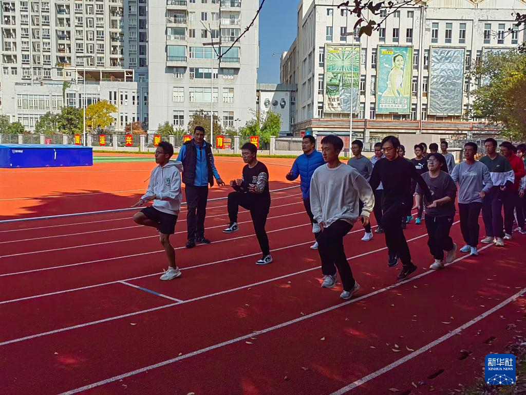 学生进行热身准备活动。新华社记者 岳冉冉 摄