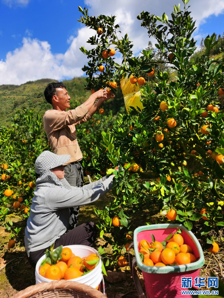 村民在采摘脐橙。新华网发(蒙自市融媒体中心 供图)