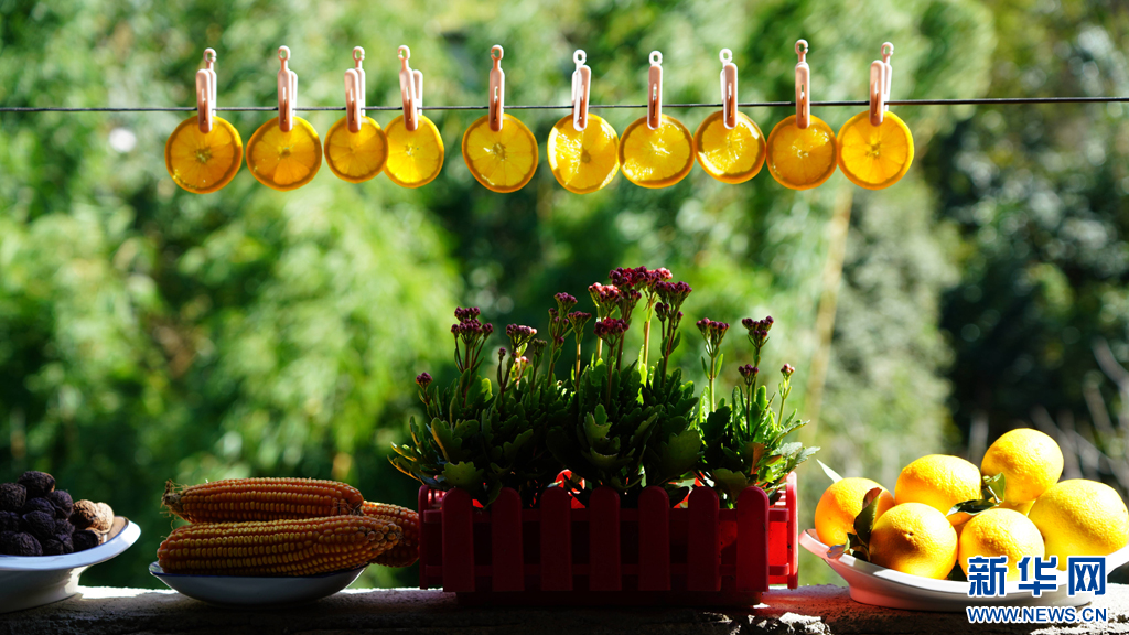 晾晒的橙子片。新华网发(蒙自市融媒体中心 供图)