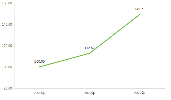 “新华·楚雄彝绣产业发展指数”市场化分指数运行结果显示,2022年,楚雄彝绣市场化指数达149.24点,基期以来复合增速22.16%,其中2022年同比增速28.89%,楚雄彝绣市场化进程进一步加速。