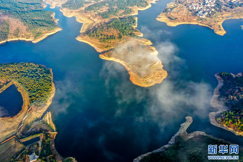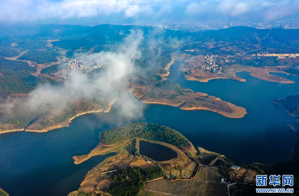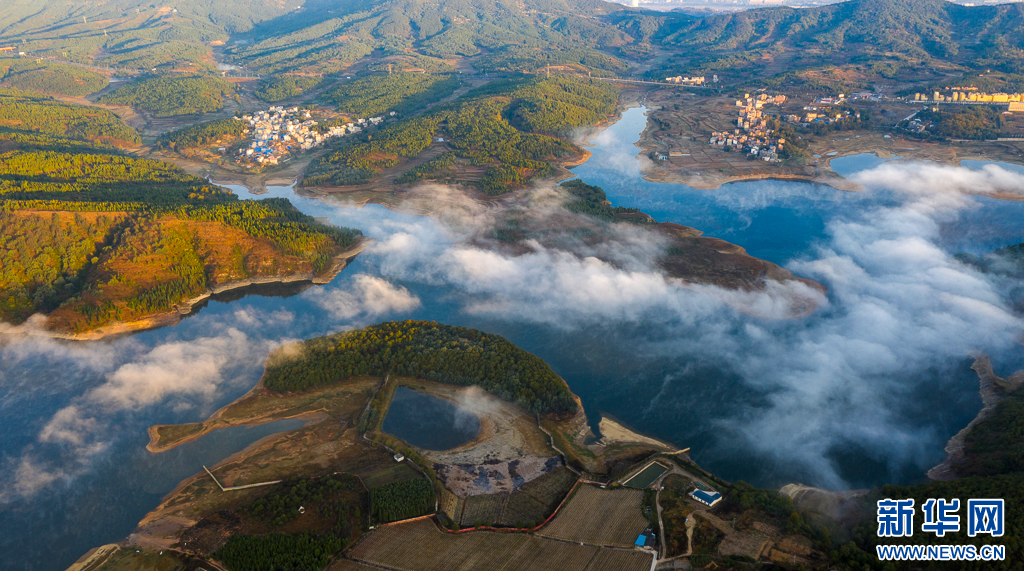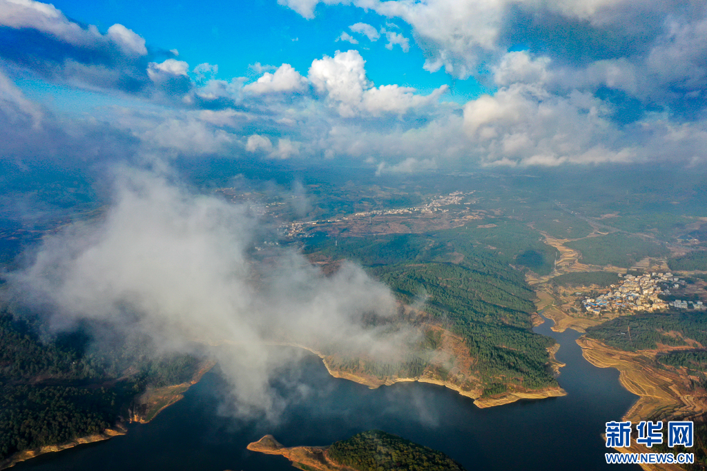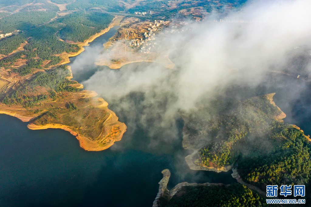 云雾缭绕的潇湘水库。新华网发(中共曲靖市委宣传部供图)