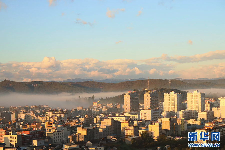 近日,在云南省楚雄彝族自治州南华县,摄影爱好者用延时摄影记录南华县上空绚丽云海,美不胜收。(南华县委宣传部 李娅洁 朱芮)