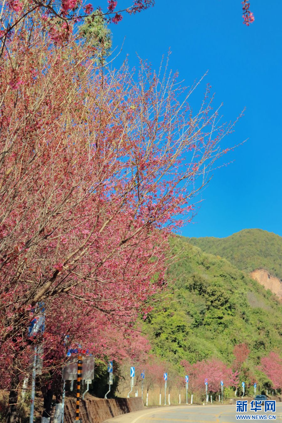 道路旁的樱花(12月19日摄)。新华网发(南华县委宣传部供图)