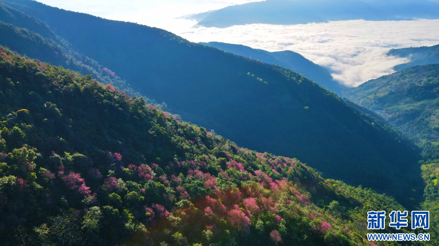 施甸县善洲林场东麓十万余株野樱花如期绽放(12月18日摄)。新华网发(施甸县融媒体中心供图)