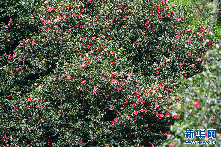 近日,在云南省保山市昌宁县天堂国有林场,成片野生红花油茶竞相绽放,成为冬日里一道亮丽的风景。