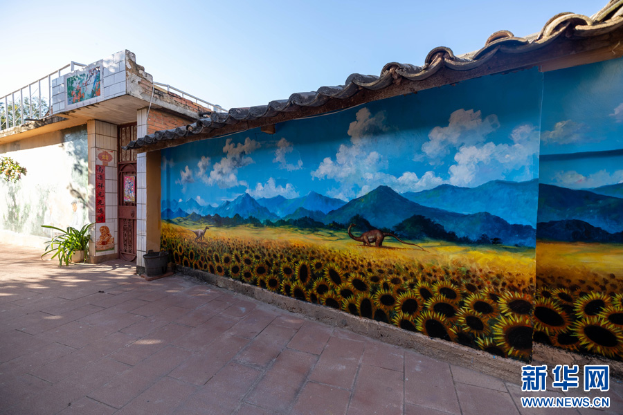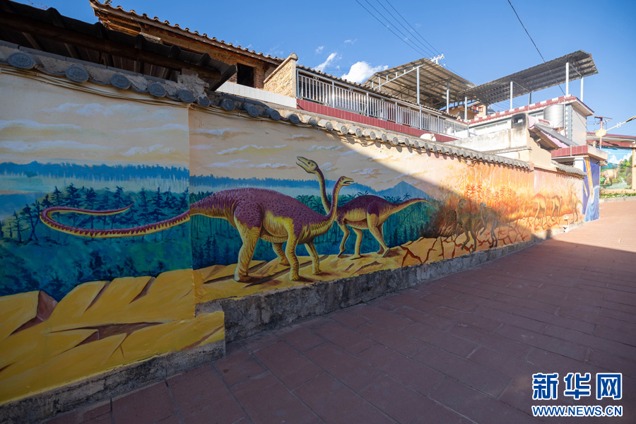 走进云南省楚雄彝族自治州禄丰市侏罗纪新村,便会被村中无处不在的恐龙装饰元素所吸引,其中最引人注目的便是随处可见的恐龙形象的手绘壁画。近年来,随着农村人居环境整治工作的深入开展,村中出现了一幅幅栩栩如生的壁画,一条条干净整洁的小道,一个个独具特色的微景观……扮靓乡村“高颜值”。