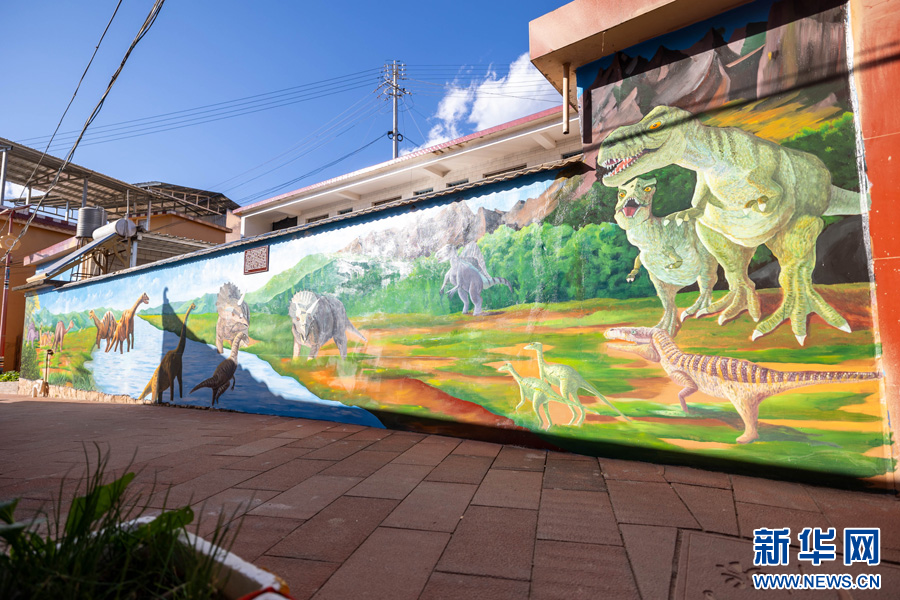 恐龙墙绘扮靓云南禄丰侏罗纪新村