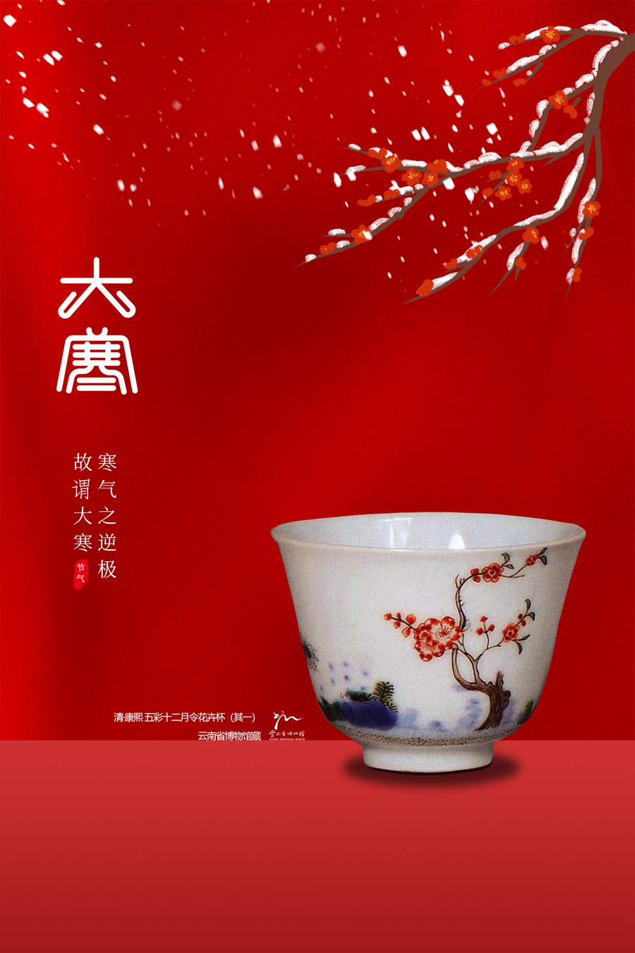 (24)大寒——五彩十二月令花卉杯(其一)(清代)