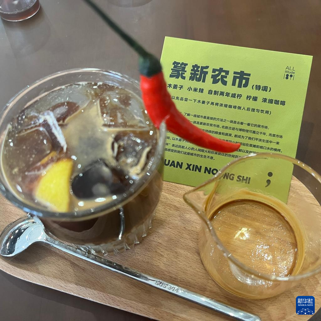 图为“地平线”咖啡店内的特调饮品“篆新农市”。新华社发(刘芷吟 摄)