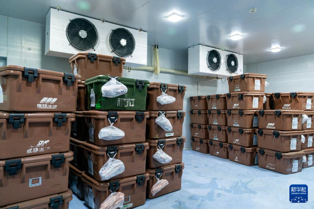这是1月26日在中国铁路昆明局集团有限公司冷链套餐生产基地冷库内拍摄的等待运输的冷链套餐。新华社记者 陈欣波 摄