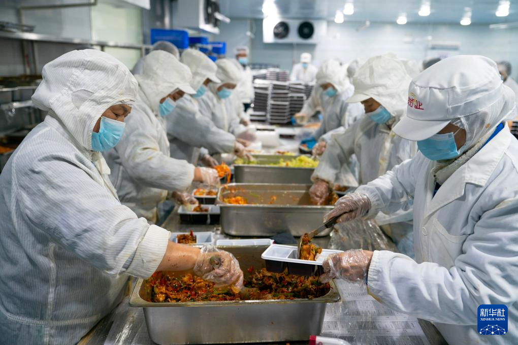 1月26日,工作人员在中国铁路昆明局集团有限公司冷链套餐生产基地内将菜品装盒。新华社记者 陈欣波 摄