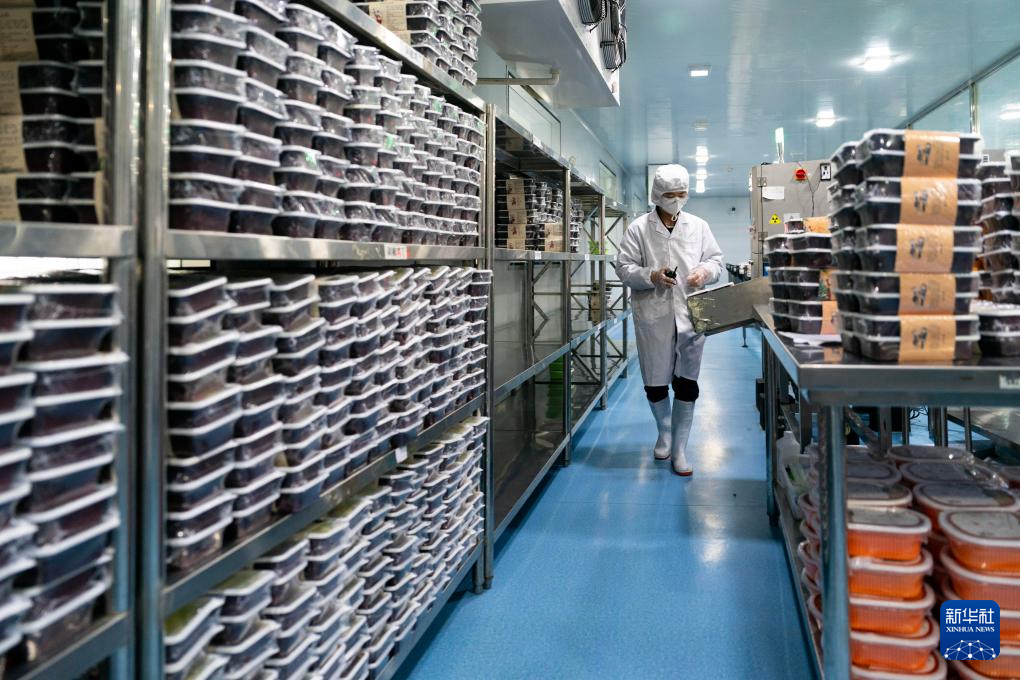 1月26日,一名工作人员在中国铁路昆明局集团有限公司冷链套餐生产基地内巡查。新华社记者 陈欣波 摄